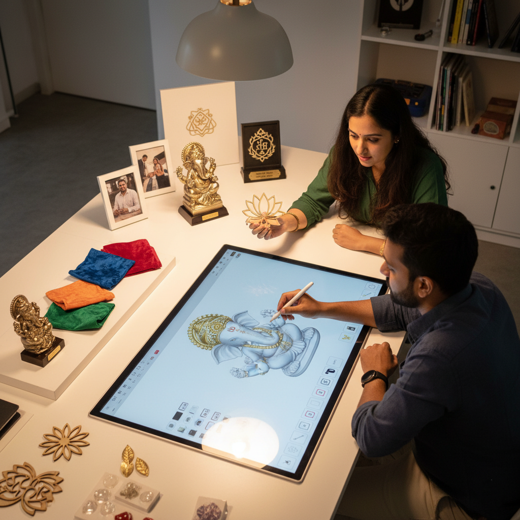 At S. MUDDAM NETWORKS, we seamlessly blend the richness of Indian cultural artistry with the precision of advanced manufacturing. Our studio specializes in creating custom spiritual decor through 3D printing, laser engraving, and UV printing—delivering pieces that are both meaningful and meticulously crafted.