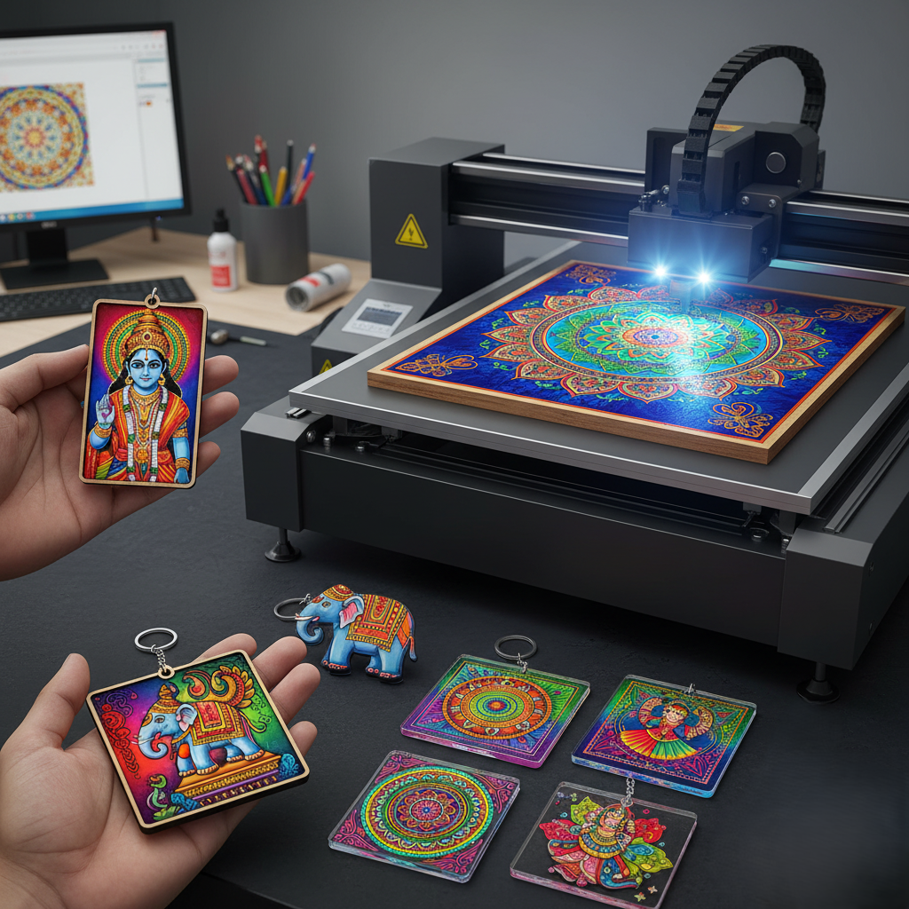 Inspired by the artistry found in Indian temples, festivals, and folklore, we transform these influences into unique decor pieces using advanced 3D printing, precision laser engraving, and vibrant UV printing. Every work in our portfolio embodies meticulous attention to detail and a deep reverence for the stories and symbols that shape our culture.